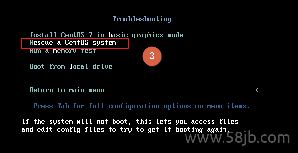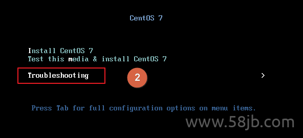 Centos 7 的安装光盘来启动系统,通过光盘启动时选择 Troubleshooting 模式