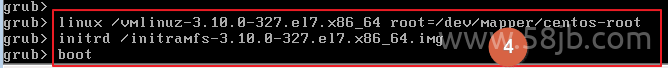 grub> linux /vmlinuz-3.10.0-327.el7.x86_64 root=/dev/mapper/centos-root