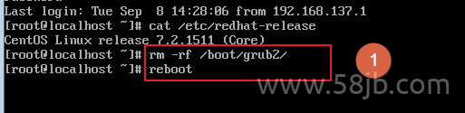 1、首先进入系统后把 /boot/grub2/ 整个目录删除